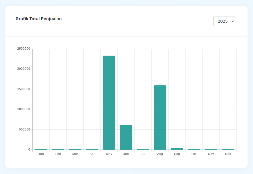 Dashboard ini dilengkapi dengan grafik penjualan tahunan yang membantu Anda melihat tren performa penjualan sepanjang tahun secara visual dan mudah dipahami.