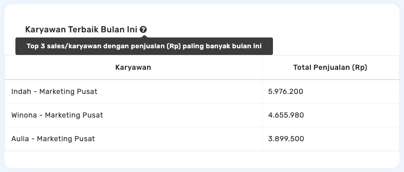 Sistem secara otomatis menampilkan tiga karyawan dengan performa terbaik berdasarkan jumlah penjualan yang berhasil dicapai selama periode tertentu.