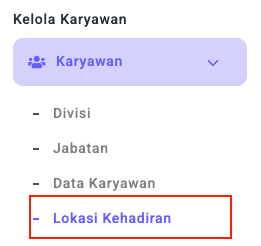Digunakan untuk mengatur lokasi yang akan digunakan sebagai lokasi presensi karyawan.